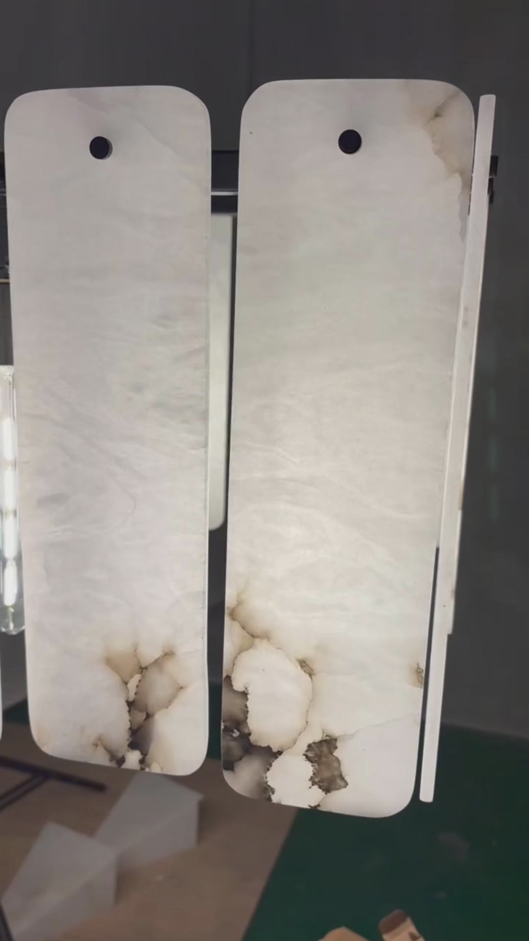 - Shades are handcrafted of solid onyx panels with radius corners