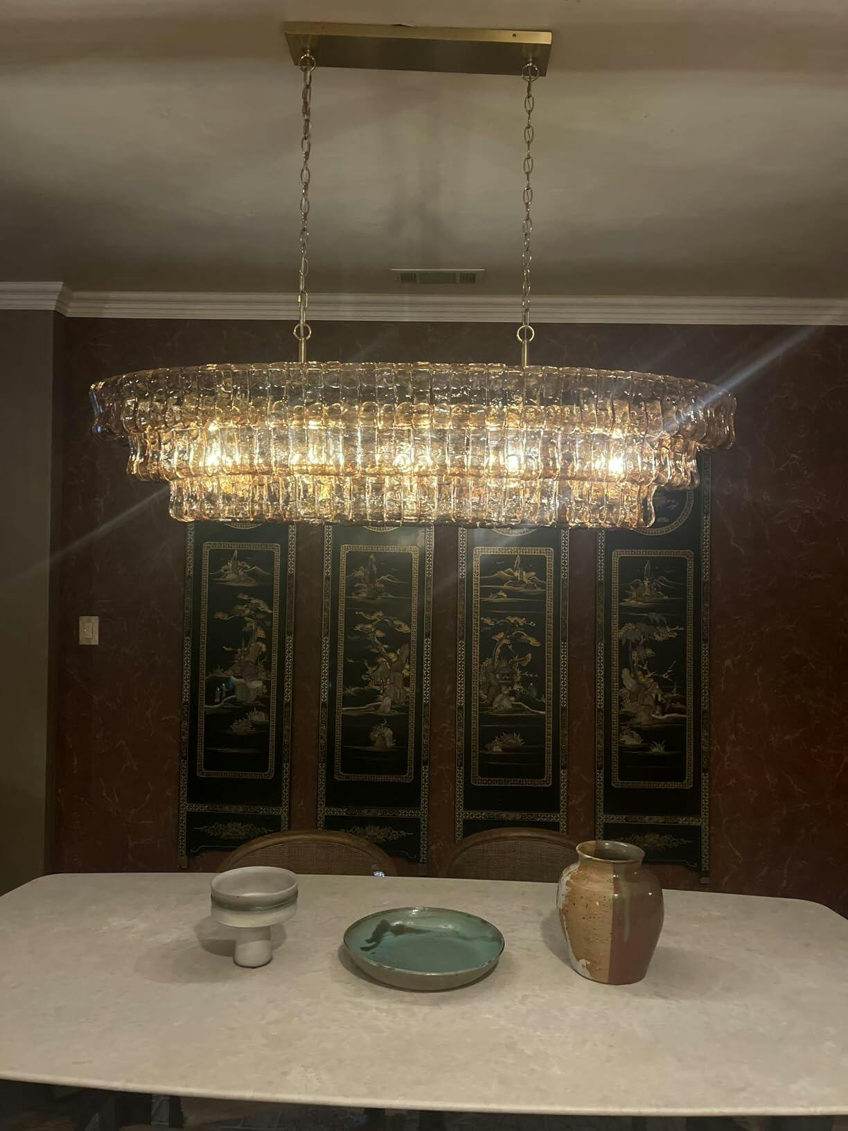- 65" chandelier has an adjustable drop length that ranges from 27"-171".